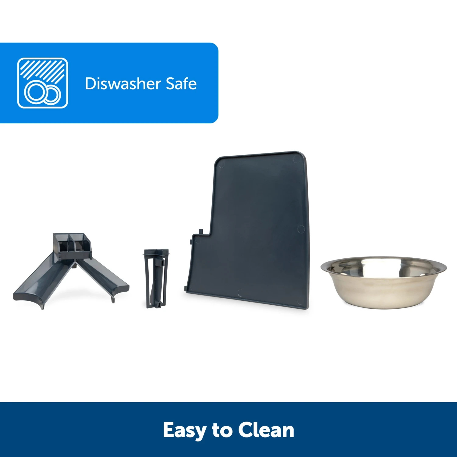 Dinner for two? We’ve got you covered! The PetSafe® 2-Pet Meal Splitter accessory is compatible with your PetSafe® Smart Feed or Healthy Pet Simply Feed™. This all-in-one solution lets you feed multiple cats or dogs at the same time with the same feeder. Inside the box you will find a meal splitter, a privacy panel and 1 stainless-steel bowl. The meal splitter snugly fits into the opening on your feeder to dispense kibble equally between each bowl. The optional privacy panel works as a barrier if you want to help bring peace to mealtime or prevent one pet from eating more than their share. The meal splitter is designed to dispense food neatly and only into your pets’ bowls. The BPA-free, food-grade material is easy to clean, simply place it in the top or bottom of your dishwasher. PetSafe® brand is here to help you and your pet live happy together™.
