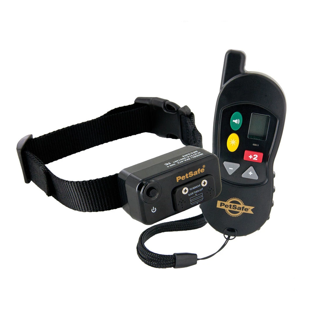 The PetSafe® Big Dog Remote Training Collar is an easy and safe way to train your dog off-leash. You can use the remote trainer to teach your dog new commands and stop bad behavior. Simply press a button and your dog will receive a harmless, but annoying static correction that gets your dog’s attention. With 16 levels to choose from, you can be sure to find just the right level for your dog.