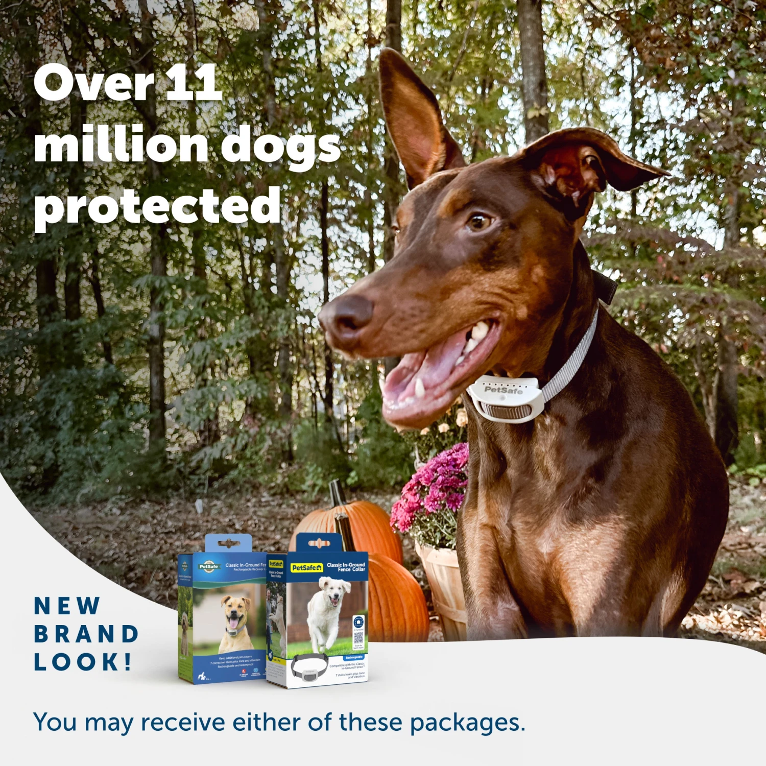 Invite all your pups to off-leash playtime with the Classic In-Ground Fence™ Rechargeable Receiver Collar. This pet fence collar has 8 levels of correction. Level 1 is a tone and vibration setting which is great to use when you’re training your dog on his new in-ground fence boundary. Levels 2-8 are adjustable static correction settings which you can set based on your dog’s temperament. Receiver collars with a vibration setting are also great for pets who are hard of hearing so they can safely enjoy playing outside too. Purchase a receiver collar for every pet in your family so they all can safely play off-leash together. You can add as many collars as you want to your compatible Classic In-Ground Fence™. This receiver collar is also compatible with all our Pawz Away® Pet Barriers, so your dog’s collar can keep him safe when he’s playing in the backyard and keep him from hopping onto the furniture with dirty paws in the living room. You and your dog deserve the best, always. Trust PetSafe® to keep your pet healthy, safe and happy.