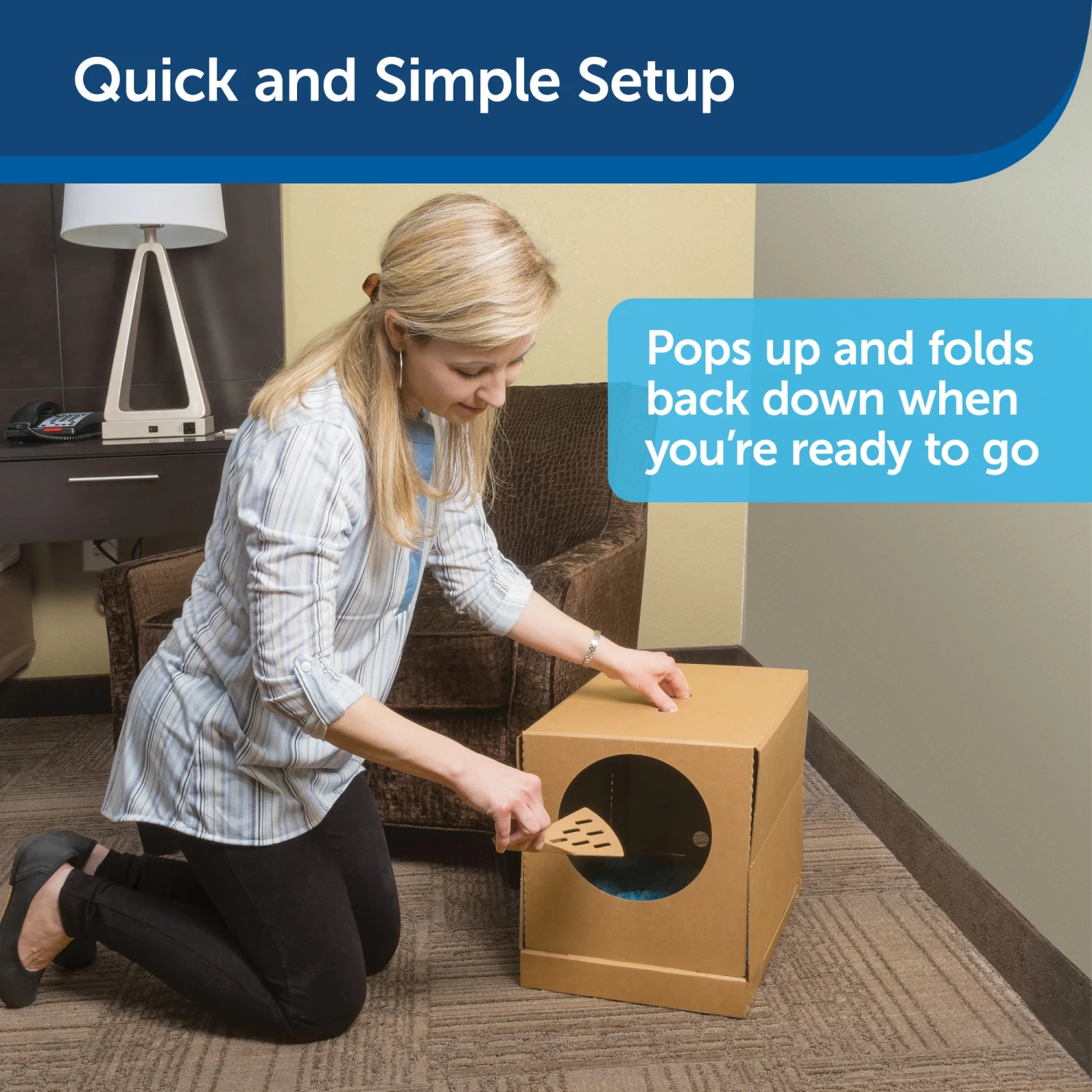 Facilitating pet care on the go, the PetSafe® Disposable Litter Box is your ultimate travel companion. Designed from reinforced corrugated cardboard, this portable litter box easily stands up and collapses, allowing cat owners to maintain hygiene for their cats anywhere. The protective coating prevents leaks, ensuring added cleanliness while the box nests in the lid for extra floor protection.