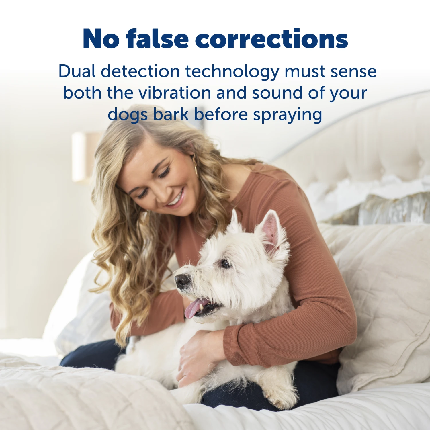 The Elite Little Dog Spray Bark Collar is our smallest spray bark control option, designed for your smallest furry friend. We created a compact, lightweight design that won’t slow your energetic buddy down on his races through the backyard. This spray bark collar detects your dog barking and immediately releases a gentle burst of spray to distract him from the mailman or the neighbor’s cat. Your dog will never be corrected because of another dog’s bark or a loud outside noise because the dual detection technology in this collar must sense both vibration and sound before spraying. Because the spray is immediate and consistent, your dog will learn to associate his barking with a correction and change his behavior within 2 weeks. That’s a win for you, your furry best friend, and your mailman. Your pet deserves the best. Trust PetSafe® to help keep your pet healthy, safe and happy.