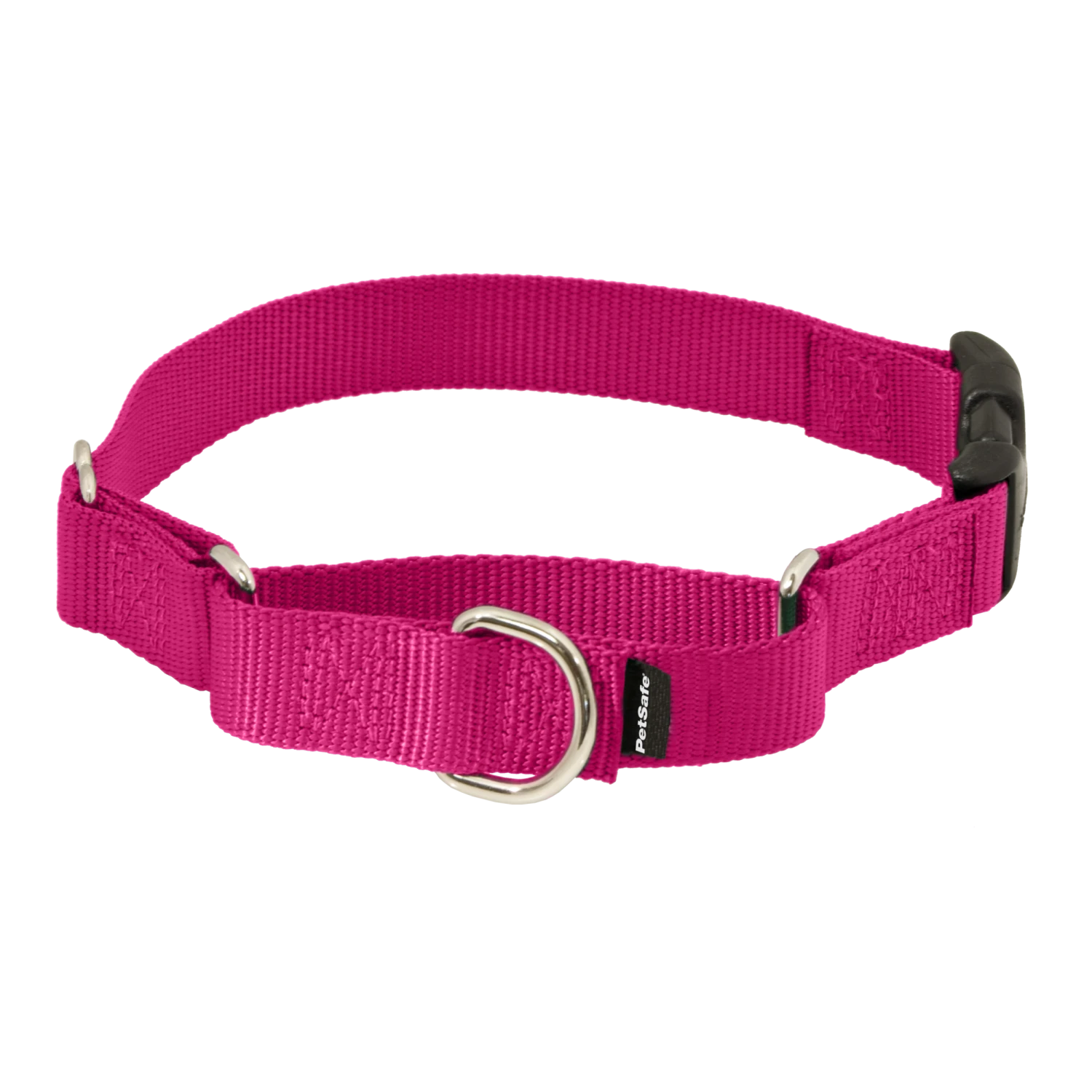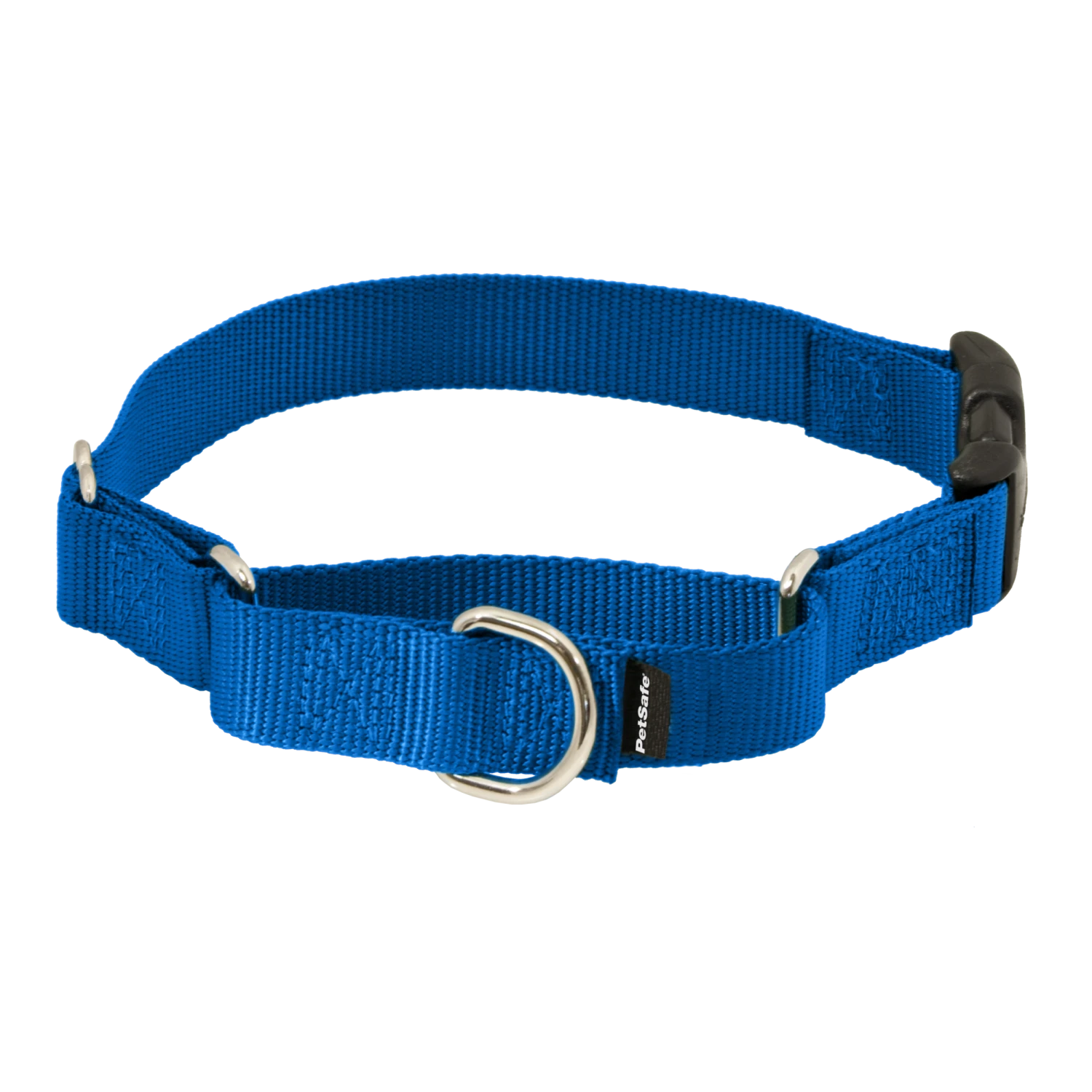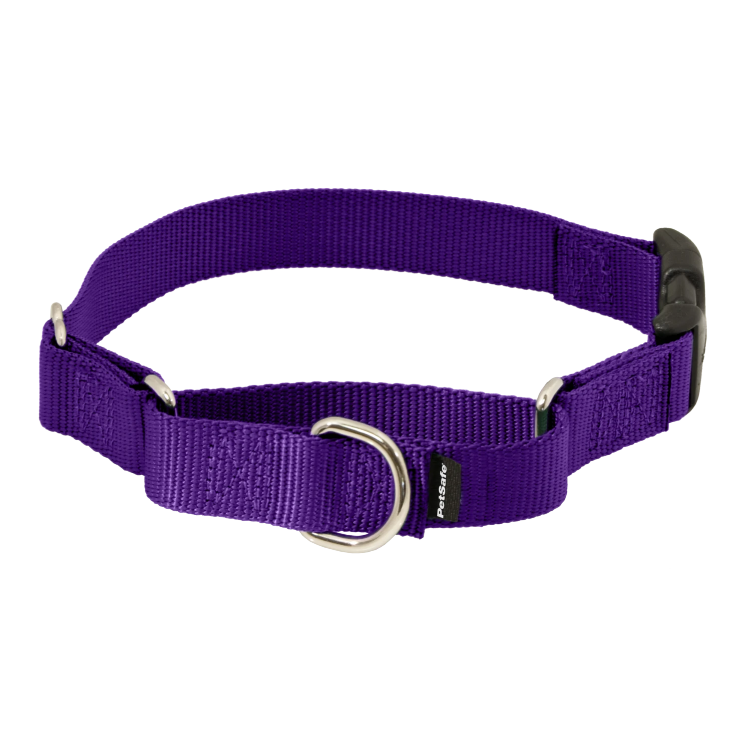 The PetSafe® Martingale Collar with Quick Snap Buckle is easy to put on and take off your dog. Martingale collars are safer than prong collars and are more comfortable for your dog to wear. This durable, nylon, martingale collar tightens when your dog pulls and loosens when he stops, so it’s only tight when it needs to be. These collars give you greater control during walks while also reducing the risk of your dog slipping out of their collar. PetSafe® brand is here to help you and your pet live happy together™.