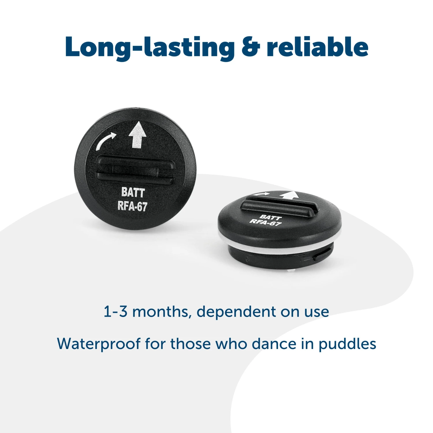 The PetSafe® RFA-67 6V Replacement Battery 2-Pack are replacement batteries that work with the PetSafe® bark collar, in-ground and wireless fence receiver collar systems. These batteries are waterproof and last 1-3 months, depending on use. PetSafe® brand is here to help you and your pet live happy together™.