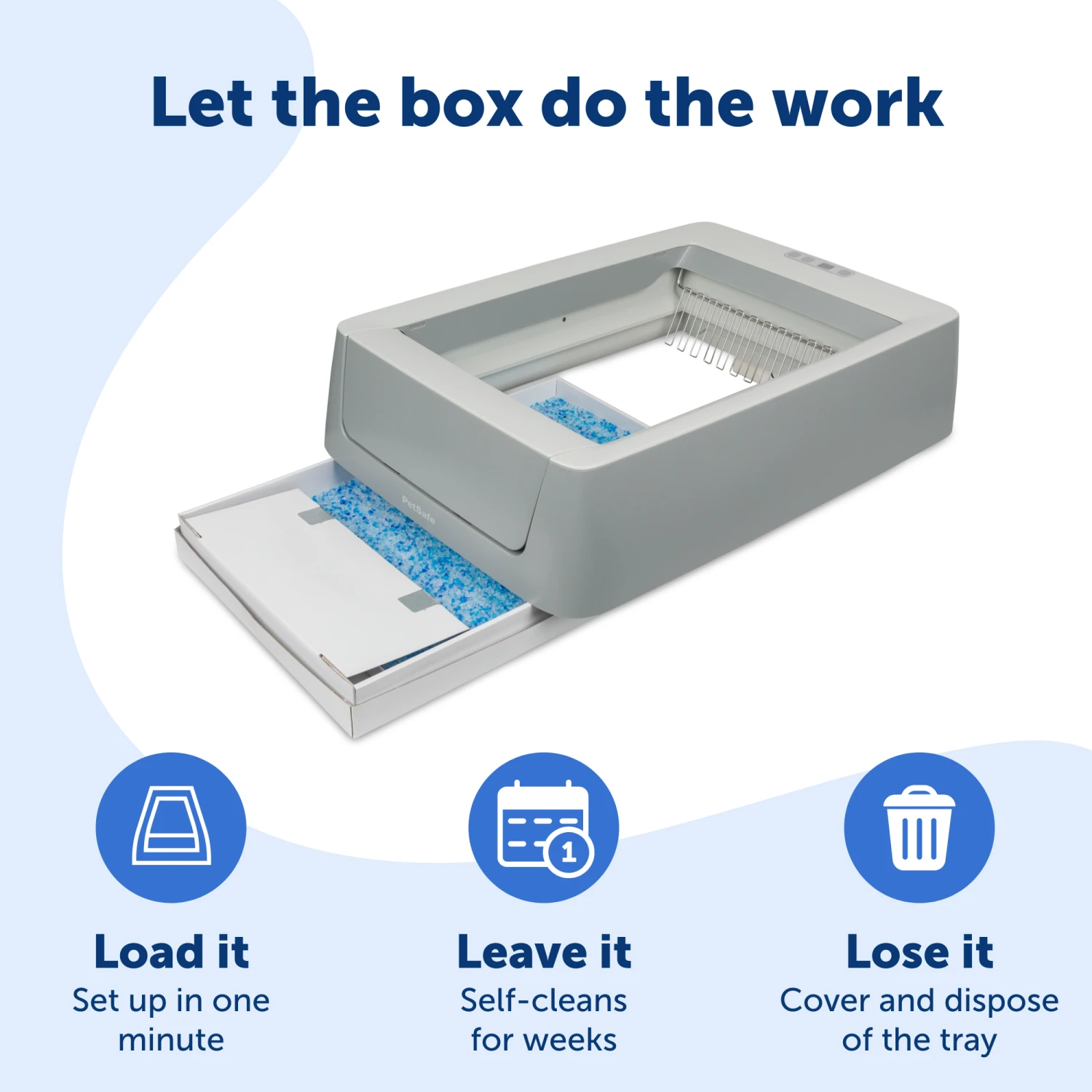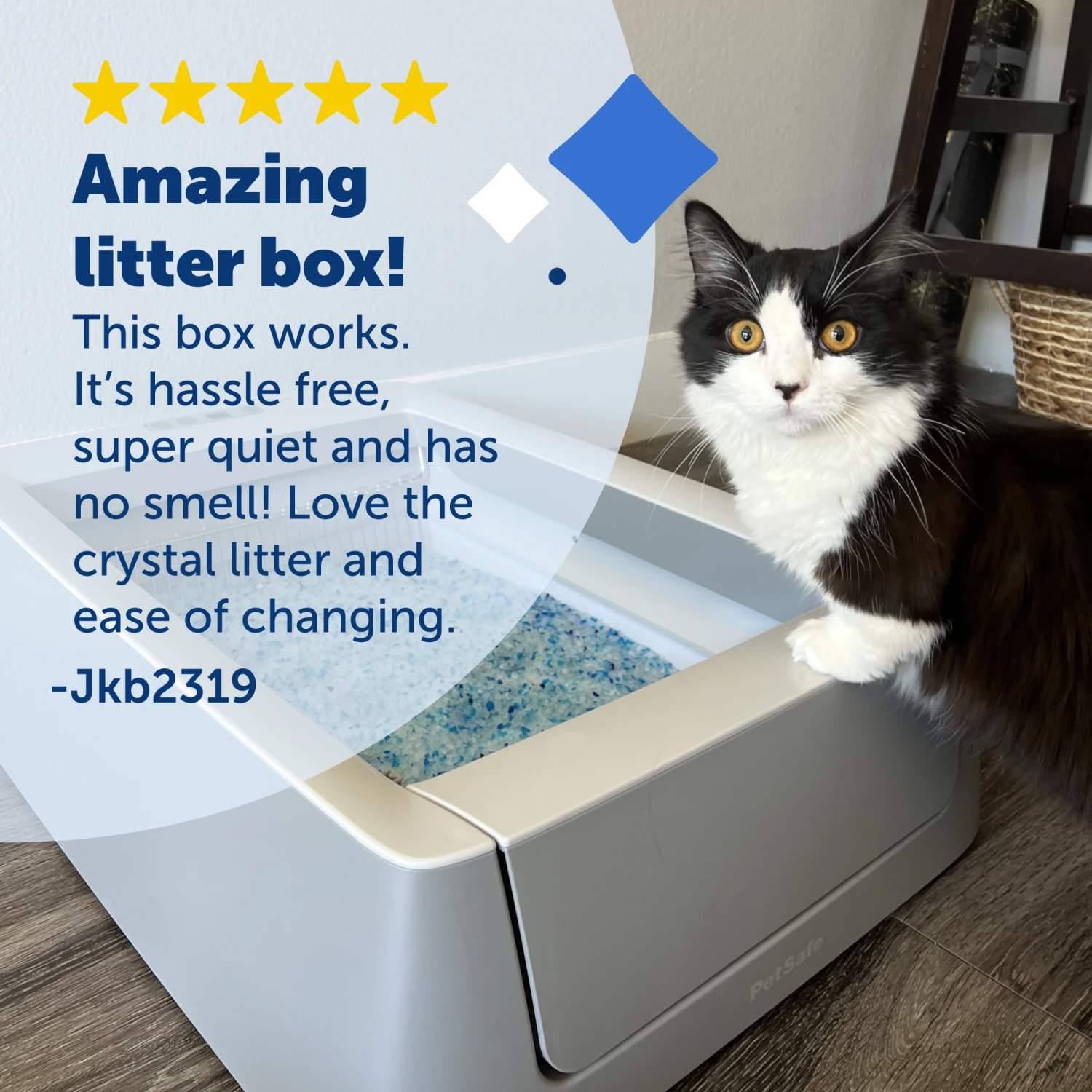 Experience the ultimate in cat care with the ScoopFree® Crystal Smart Self-Cleaning Litter Box, designed for those who prioritize time and cleanliness. This smart self-cleaning litter box needs no scooping or refilling for weeks, allowing you to focus on your feline companion instead of the litter box chores. With its integrations into the My PetSafe® app, you can monitor your cat’s health and litter usage from anywhere, providing peace of mind.
