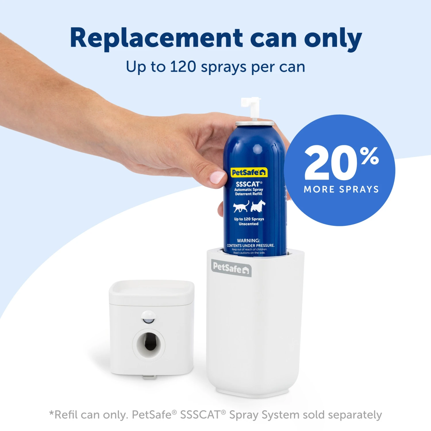 Always have an extra SSSCAT® Refill Can on hand to ensure your pets stay away from off-limit areas in your home. Swapping out the refill can in your SSSCAT® Automatic Spray Pet Deterrent is easier than ever and each can comes with up to 120 sprays that’ll help guide your pet away from unwanted areas.